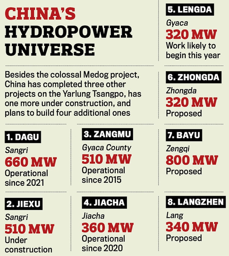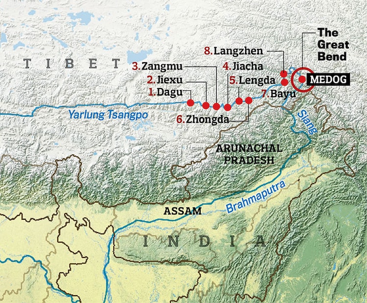 The Medog dam isn’t an isolated project but part of a grand strategy. Sayanangshu Modak, a doctoral researcher at the University of Arizona’s School of Geography, Development and Environment, says the Yarlung Tsangpo stretch was marked for hydropower as early as 2003. Since the 2010s, China has steadily expanded its hydropower footprint on the Brahmaputra’s upper reaches. The Zangmu dam, completed in 2015, set the stage for further projects at Dagu, Jiacha and Jiexu. Satellite imagery now reveals nearly 20 dams—large and small—along the river, signalling Beijing’s long-term water ambitions. “The new move appears to be the latest step by Beijing to maintain an upper hand in the region’s water geography,” says Kugelman.