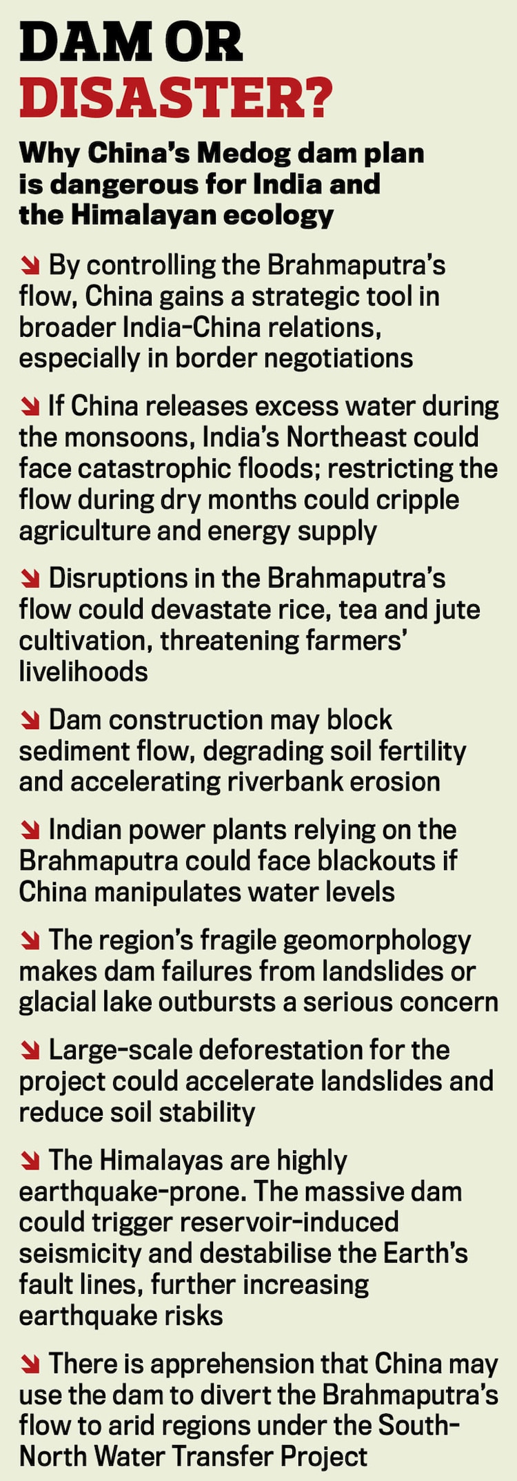 While China presents the project as a step toward achieving carbon neutrality by 2060, for India and Bangladesh, it signals a looming disaster. The dam’s location, barely 30 km from Arunachal Pradesh, places it alarmingly close to India’s border, raising security concerns in New Delhi. Worst-case scenarios throw up a nightmarish picture: if the dam were to fail—due to engineering flaws, an earthquake or even sabotage—the consequences would be catastrophic. A towering surge of water could rip through Arunachal Pradesh and Assam, wiping out entire towns within minutes. “This Chinese project isn’t just a tease,” says Michael Kugelman, director of the Washington-based South Asia Institute. “China has the capacity to mobilise capital quickly and build out large-scale infrastructure projects without delays, thanks to its centralised economy and undemocratic politics. This means New Delhi needs to start thinking now about how to mitigate the possible deleterious implications—especially for water security, the environment and geopolitics.”