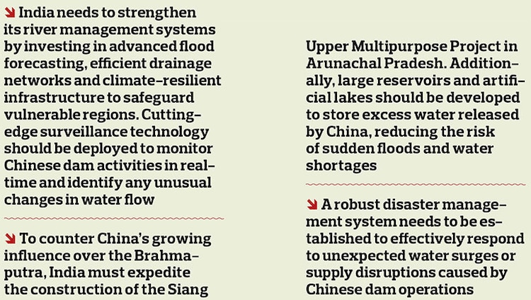 Rather than pursuing a spree of dam construction, experts urge India to strengthen its northeastern water management systems. This includes enhancing independent river flow monitoring from China using advanced satellite technology, refining flood risk assessments and upgrading telemetry stations. Gamble points out that India lags behind China in studying Himalayan ecology and river systems. “India has yet to thoroughly analyse the flow data China has provided on the Yarlung Tsangpo. Instead of issuing threats over dam construction, India must invest in a deeper understanding of the region’s hydrology and risks. Armed with this knowledge, it can engage China in informed negotiations, presenting concrete evidence on the downstream impacts,” she asserts.